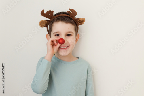 christmas, children, children, boy, cervid, reindeer, horn, costume, happy, joy, holiday, background, white, copy space, nose, rudolph, gift, christmas, merry, santa, funny, smile, surprise, portrait, fun, face, celebration, happiness, decoration, childhood, cheerful, male, new year, season, decorative, headband, headwear, wear, december, celebrate, festive, laugh, joyful, antler, indoor, ball