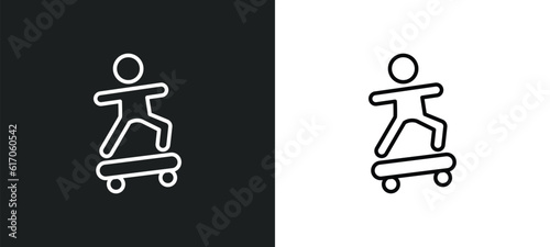 boy with skatingboard line icon in white and black colors. boy with skatingboard flat vector icon from boy with skatingboard collection for web, mobile apps and ui.
