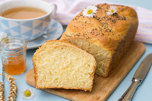 Braided white bread brioche challah with poppy seeds