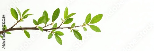 Branches isolated on white background with small leaves, leafy, plant, wood