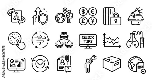 Brand ambassador, Ship and Wind energy line icons set. Secure shield and Money currency exchange. Chemistry lab, Approved and Outsource work icons. Vector