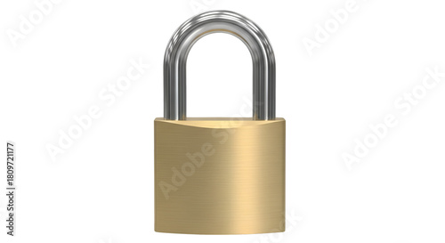 Brass Padlock With Silver Shackle Isolated security