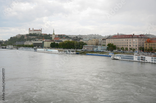 BRATISLAVA, SLOVAKIA - MAY 9, 2019: View from the embankment on Danube River