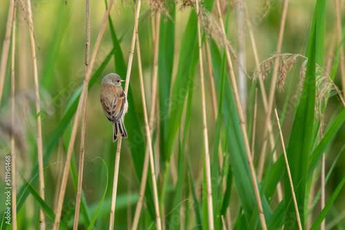 brązowy ptaszek na trzcinie zielona