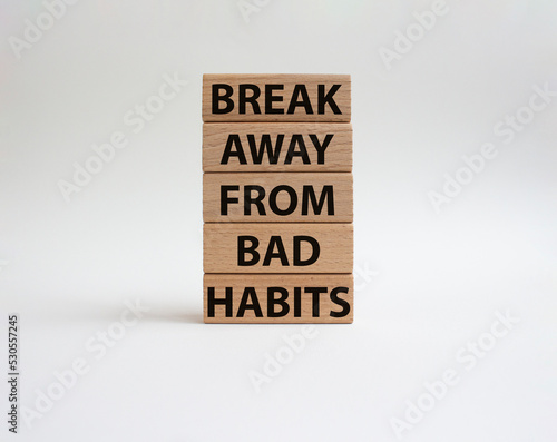 Break away from bad habits symbol. Wooden blocks with words Break away from bad habits. Beautiful white background. Business and Break away from bad habits concept. Copy space.