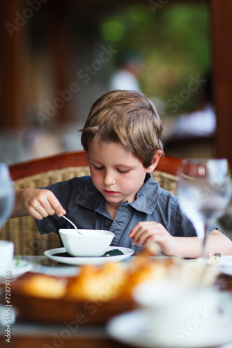 casual attire, caucasian, happy, lifestyle, people, adorable, children, cute, enjoying, enjoyment, children, person, food, vertical, small, boy, healthy, home, meal, eating, mealtime, sitting, breakfast, morning, looking