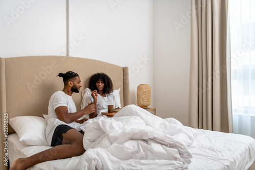 affectionate, home, attractive, beautiful, beauty, bed, bonding, breakfast, couple, cosy, curly hair, food, photogenic, happy, home, intimate, love, lying down, man, morning, pair, battercake, pillow, privacy, rest, sheet, talking, tea, together, wake up, woman