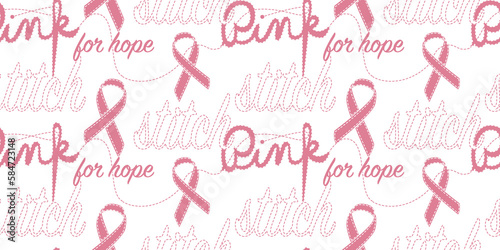 Breast Cancer Awareness, Pink Ribbons, Stitching for Hope, Pink, Transparent Background, Typographic, Lettering, Iconic, Overlay, Repeating Pattern Tile