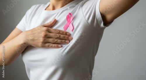 breast, cancer, awareness, ribbon, pink, woman, health, care, self, exam, medicals, female, support, prevention, disease, health care, check, body, hand, diagnosis, wearing, chest, this, image, with, art, design, digital, modern, creative, conceptual