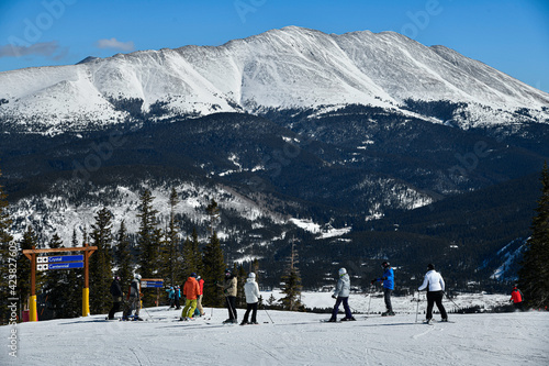 Breckenridge ski resort in winter time with snow in the Colorado Rocky Mountains. Scenic landscape.