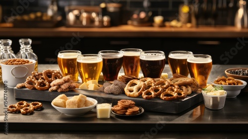 brewery, beer, pretzel, illustration, craft, modern, minimalist, design, concrete, bar, goggles, colours, foam, head, wooden, board, traditional, cheese, stuffed, bite, shiny, equipment, blackboard, menu, offering, artisanal, establishment, background, brewing, unique, variety, polished