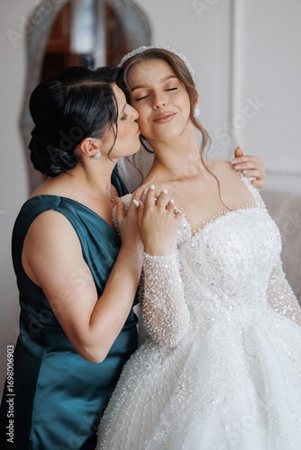 bride, bridesmaid, wedding, ceremony, bridal, suite, hugs, joy, fashion, friendship, celebration, happiness, moment, love, beauty, preparation, emotional, attire, make-up, coiffure, elegance, sparkle, connection, laughter, smile, support, occasion, photoshoot, tradition, family, togetherness, joyfulness, party, dress, detail, indoor, decor, event, lighting, glamour, chic, bond, memory, ready, special, day, story, heartfelt, closeness