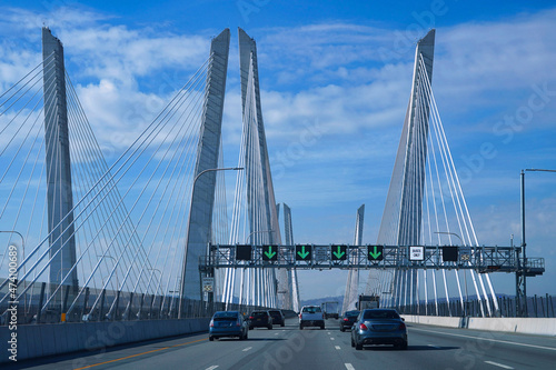 suspension bridge, across, modern, road, traffic, car, exiting, leaving, new york city, highway, automobile