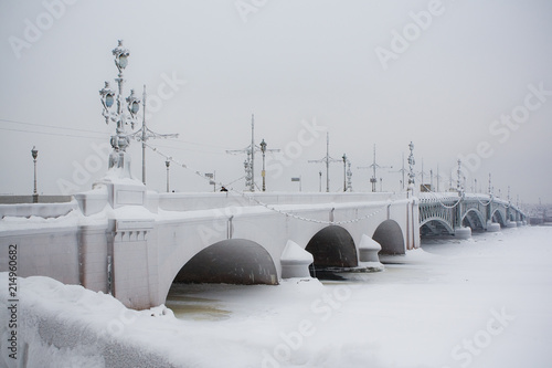 bridge, river, water, winter, sky, snow, landscape, city, ice, architecture, blue, lake, dam, sea, russia, ship, europa, white, travel, cold, sunset, building, nature