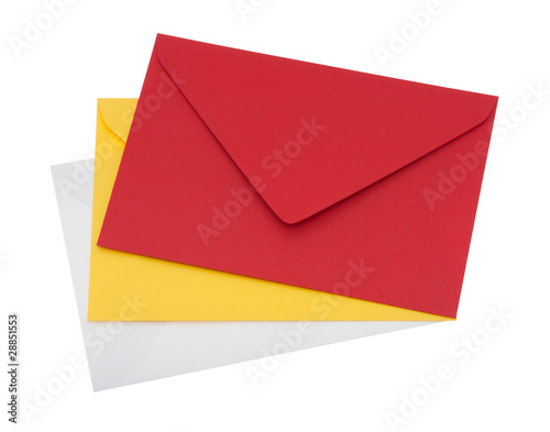 envelope, envelope, white, yellow, red, release, letter, isolated, correspondence, blank, nobody, paper, mail, front view