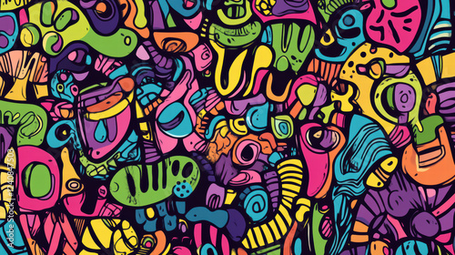 Bright and colorful abstract doodle shapes create vibrant and playful design, perfect for artistic projects or backgrounds. lively patterns evoke creativity and fun