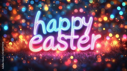 Bright and Colorful Happy Easter Neon Sign with Vibrant Lights