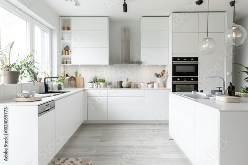 Bright and cozy white kitchen with minimal decor and sleek finishes
