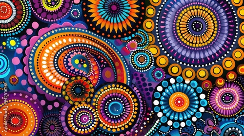 Bright and Vibrant Dot Painting in Traditional Australian Aboriginal Style