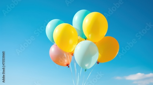 Bright balloons soar against the backdrop of the blue sky.