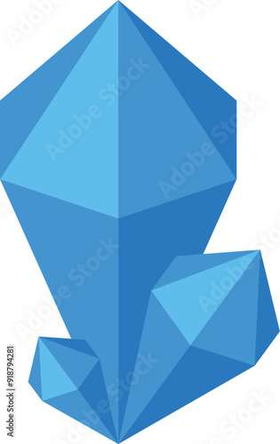 Bright blue crystal cluster with sharp edges glowing on plain white background