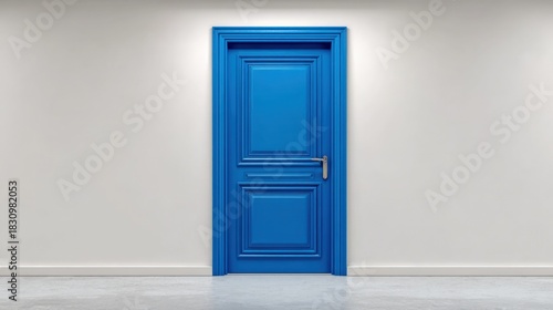 Bright Blue Door in a White Wall: Modern Architecture and Interior Design Concept