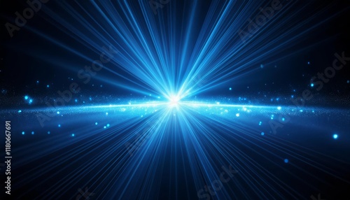 Bright blue light effect with rays and highlights, glow particle, black background