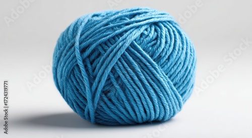 Bright blue yarn ball on light gray background