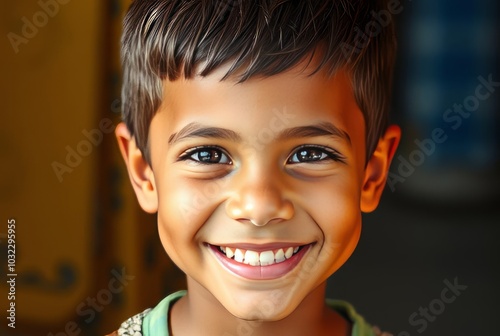 Bright colorful portrait of a boy with a charming friendly smile