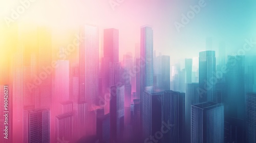 Bright colors blend beautifully as morning light illuminates the skyline of a busy city