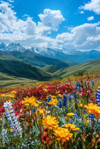 mountain, landscape, nature, mountain, sky, summer, flower, flower, meadow, spring, alps, grass, alpine, field, cloud, view, green, travel, forest, vale, scenic, cloud, hill, peak, snow
