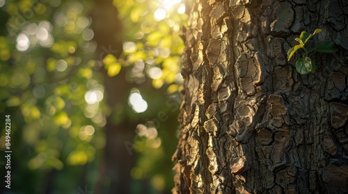 Bright daylight showcases tree bark texture