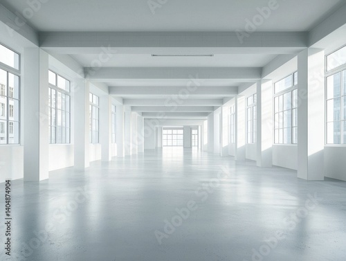 architecture, interior, hallway, column, window, light, minimalist, design, building, space, open, bright, white, empty, floor, reflective, daylight, perspective, structure, modern, clean, urban, office, loft, studio