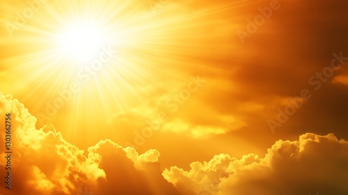 Bright golden sunlight streaming through fluffy clouds during a vibrant sunset sky