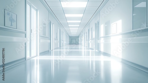 Bright Modern Corridor with Large Windows, A long, bright corridor with large windows allowing natural light to flood in