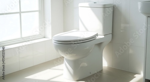 Bright natural light scene: clean white ceramic toilet, a symbol of sanitation and dignity