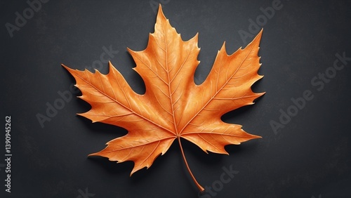Bright Orange Maple Leaf with Light Tones on Dark Gray Background
