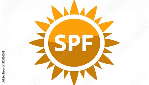 bright orange sun icon with spf text in center and long shadow effect, ideal for skincare branding, sunscreen product label, summer campaign graphic, web icon, or health awareness design