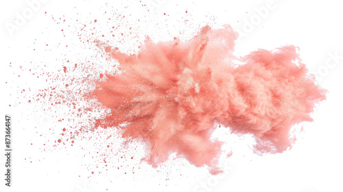 bright peach fuzz paint color powder festival explosion burst isolated white background.