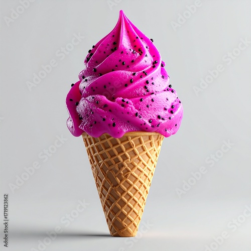 Bright Pink Dragon Fruit Soft Serve Ice Cream in Classic Waffle Cone