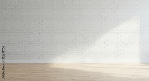 Bright room Light on brick wall with wooden floor. Interior design. Stock photo