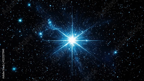 Bright star explodes in cosmic space; night sky background; science fiction