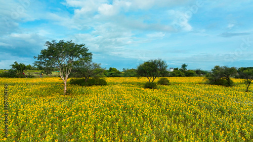 Bright sunflower and marigold blossoms in Gundlupet, Chamarajanagar district, Karnataka. A popular tourist spot and photography destination during monsoon.