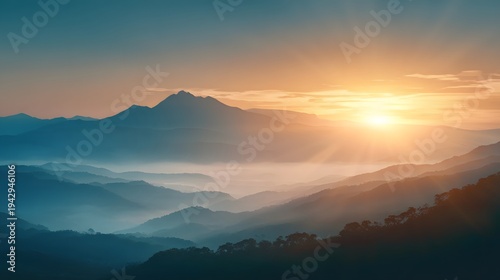bright sunrise illuminating mountain landscape symbol of hope knowledge and discovery international day of light inspirational concept copy space