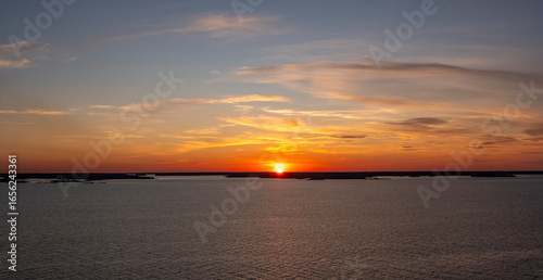 sunset, baltic sea, seascape, ocean view, dramatic sky, cruise ship, evening light, golden hour, horizon, panoramic view, travel destination, summer evening, sailing, open sea, journey, tranquil scene, maritime