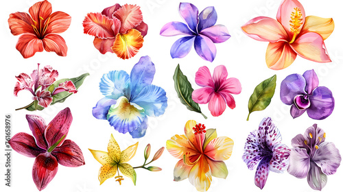bright, watercolor, flower, array, colourful, floral, botanical, bloom, artistic, nobody, no people, isolated, alpha, transparent