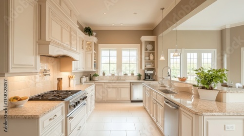 kitchen, interior, design, home, house, room, decor, modern, style, white, cabinet, granite, appliance, flooring, window, lighting, bright, airy, roomy, clean, elegant, luxury, residential, real, estate, property, new, beautiful, dream, photo, island, sink, faucet, hardware, cabinet, range, oven