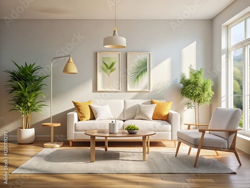 Bright White Room Interior with Framed Poster - Minimalist Home Decor Stock Photo