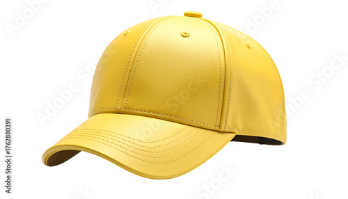 cap, yellow, hat, apparel, clothing, headwear, accessory, fashion, style, baseball, casual attire, summer, sun, protection, rimmed, shade, head, wear, vibrant, bright, object, isolated, background, black, simple, minimalist, studio, shot, closeup, front, view, plain, solid, colours, nobody, single, design, fabric, texture, stitched, round, dome, buttons, adjustable, strap, trendy, modern, activewear, unisex