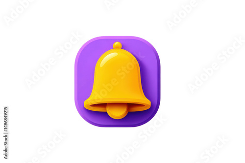 Bright yellow bell icon on a purple background, perfect for notifications and alerts, Isolated on transparent Background